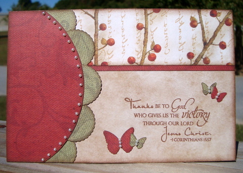 I chose to feature Kelly's "thank you" card. I love how Kelly repeated this gorgeous tree stamp in different soft colors and also gave one of them extra dimension. Beautiful card! You can learn more about Kelly's card by visiting her blog.