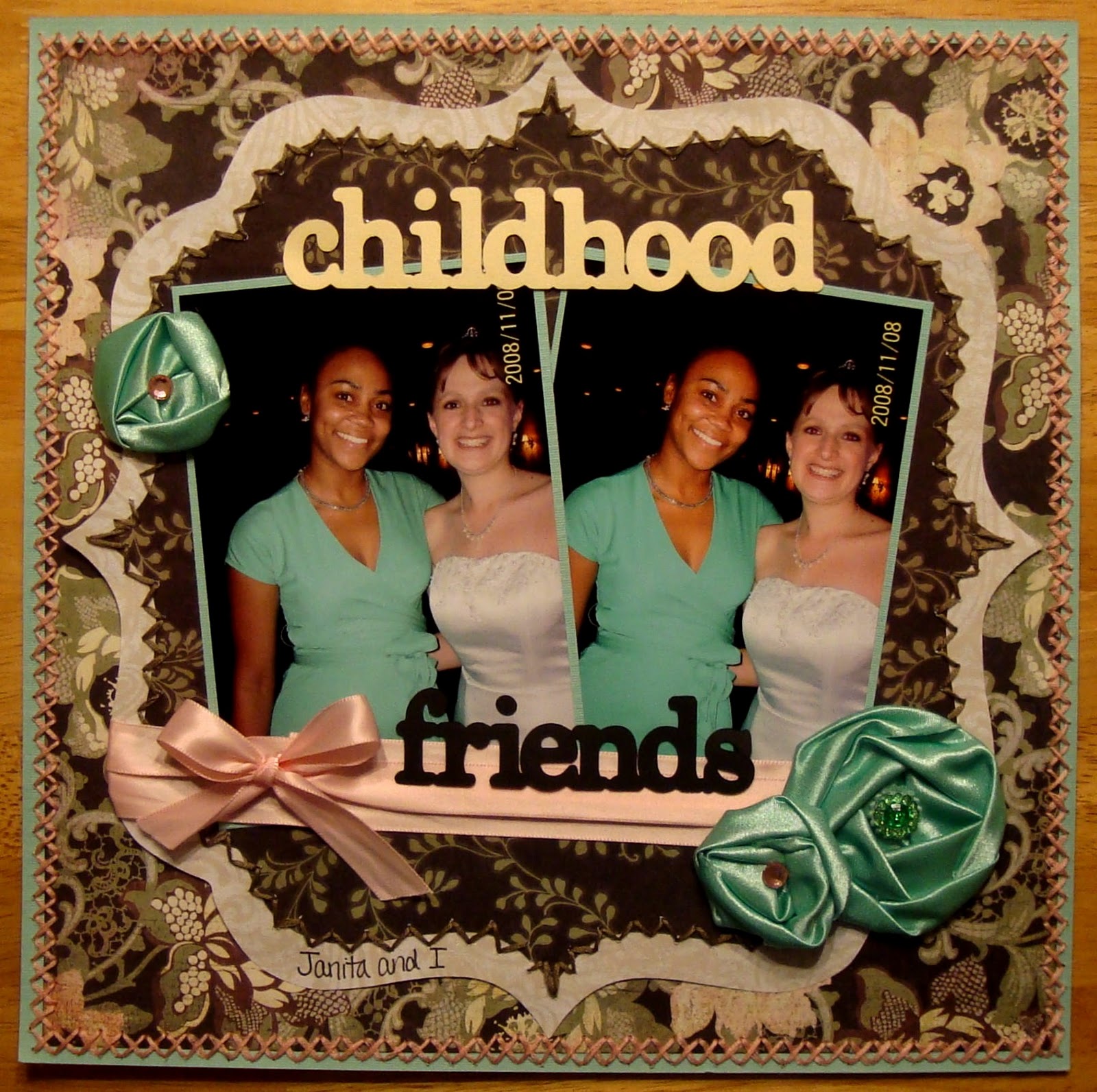 It's been a while since I worked on my wedding album, but I knew if I was going to do a lot of hand-stitching (an did I ever!!) I wanted it to be an extra special layout. This is one of my favorites in that album! And my poor hubby isn't in it LOL.